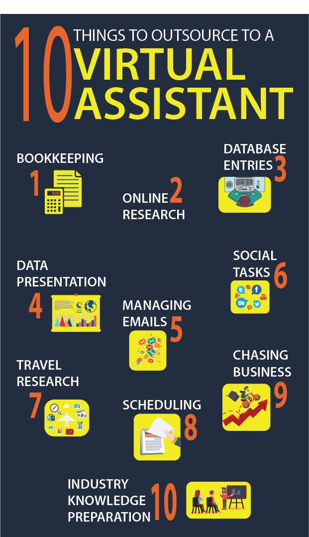 Alina Dizik has explained in her article on Entrepreneur – An article by Alina Dizik in Entrepreneur listed the top 10 tasks that you can outsource to your virtual assistant: